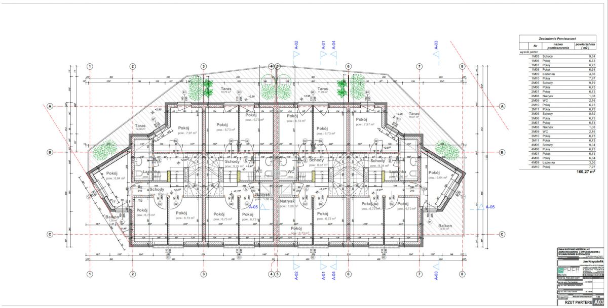 Opis nieruchomości: Budynek w zabudowie bliźniaczej składa się z czterech lokali mieszkalnych, każdy z 8 pokojami, wspólną kuchnią i łazienkami na każdym piętrze. Pokoje w pełni wyposażone, część z tarasami. Nieruchomość jest wynajmowana w ramach długoterminowych umów najmu, z obłożeniem bliskim 100% od kilku lat, co gwarantuje stabilny przychód.