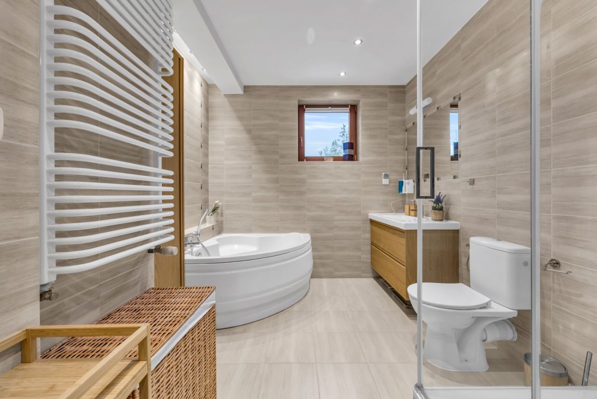 • łazienka z wanną i prysznicem,