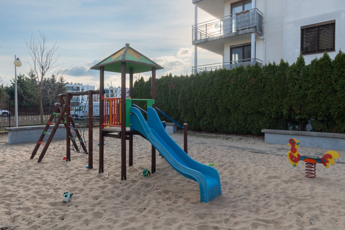 NAJWIĘKSZE ATUTY • Przestronność i doświetlenie: Doskonale zaplanowany układ z południową ekspozycją części dziennej. • Duży salon z wyjściem na taras, idealny na popołudniowy odpoczynek w słońcu. • Kompletne zaplecze: Aż dwa miejsca parkingowe, duża komórka lokatorska oraz ogólnodostępna rowerownia. • Rodzinna lokalizacja: Bezpieczne, zamknięte osiedle z placami zabaw i szkołą podstawową w zasięgu kilkuminutowego spaceru. ________________________________________ BUDYNEK I OSIEDLE Apartament mieści się w eleganckim zespole budynków z 2003 roku. Inwestycja została zaprojektowana z myślą o komforcie mieszkańców - niską zabudowę otacza starannie wypielęgnowana zieleń. Do dyspozycji mieszkańców oddano: • Dwa bezpieczne place zabaw na terenie zamkniętym. • Wygodną rowerownię na parterze budynku. • Estetyczne i zadbane części wspólne.