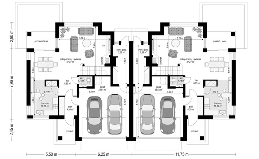Garaż na dwa samochody + pomieszczenie techniczne