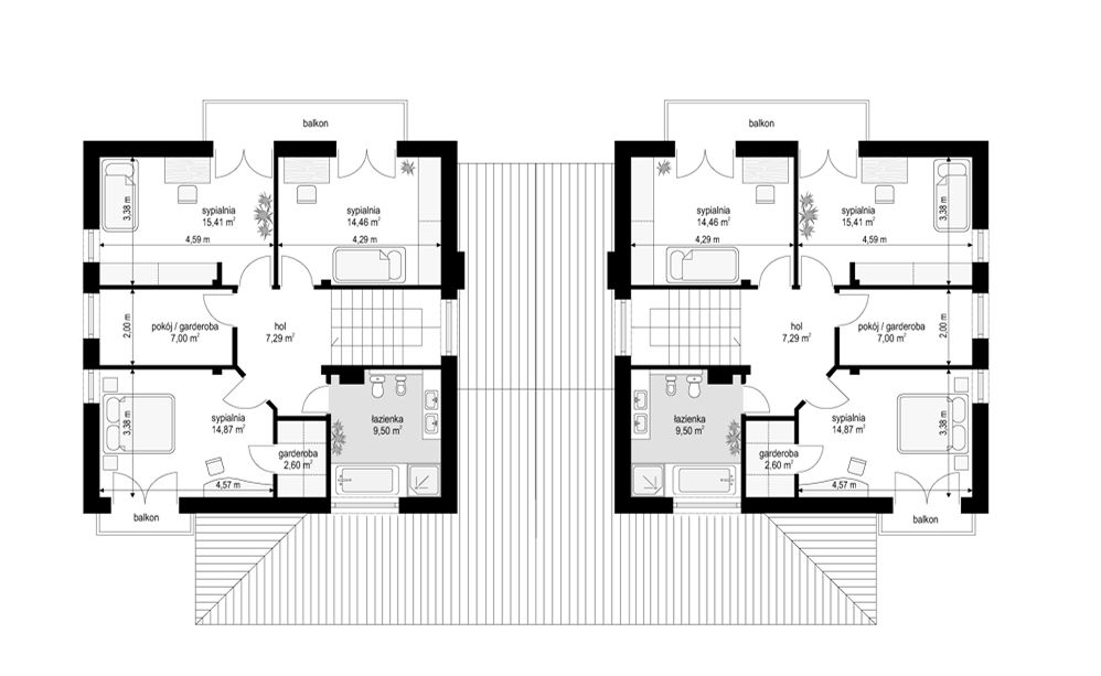 4 sypialnie, w tym jedna z prywatną łazienką
