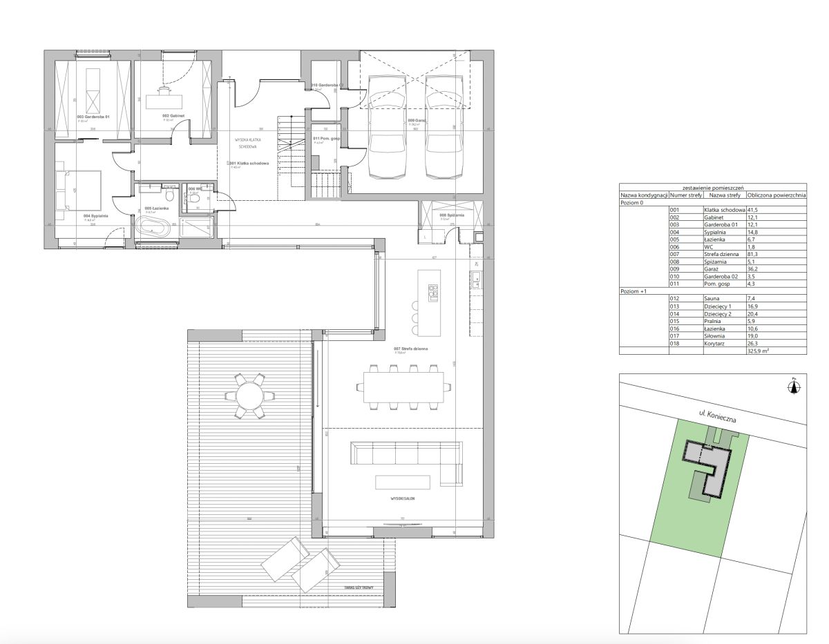 Rezydencja No 20 o metrażu 326m2 położona jest na rozległej, leśnej działce o powierzchni 1830m2. Dom został starannie zaprojektowany z myślą o jak najlepszej ekspozycji i poczuciu prywatności - ponieważ jesteśmy świadomi, że w aktualnych projektach deweloperskich właśnie tego brakuje najbardziej.