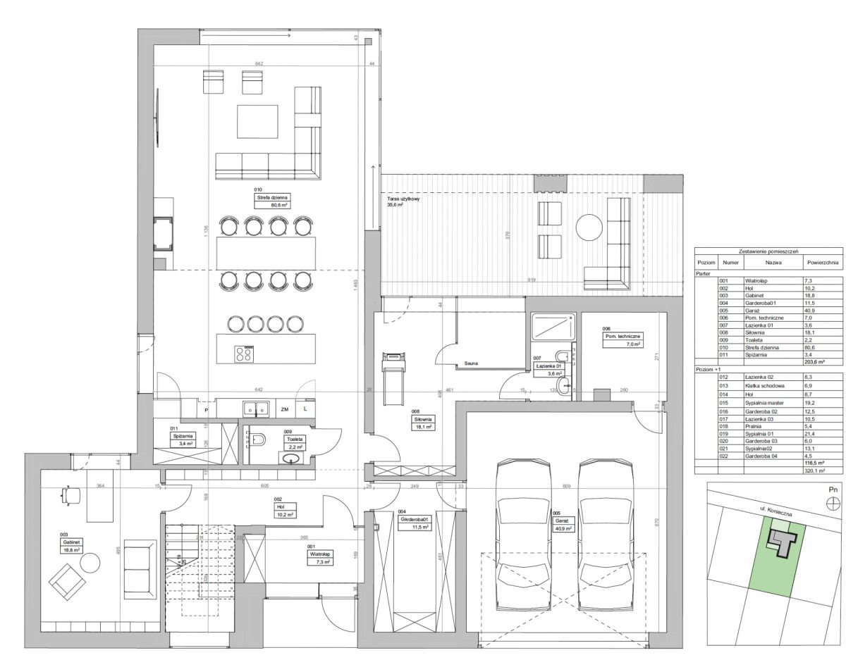 Rezydencja No 21 o metrażu 320m2 położona jest na rozległej, leśnej działce o powierzchni 1830m2. Dom został starannie zaprojektowany z myślą o jak najlepszej ekspozycji i poczuciu prywatności - ponieważ jesteśmy świadomi, że w aktualnych projektach deweloperskich właśnie tego brakuje najbardziej.
