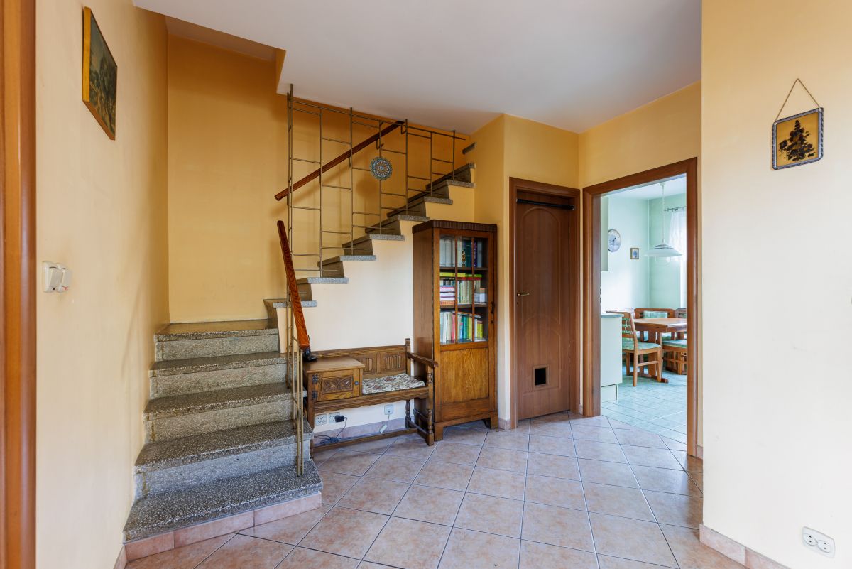 Do ogrodu wejdziemy z zewnątrz, a pod wiatrołapem znajduje się dodatkowe miejsce na przechowywanie sprzętów ogrodowych.