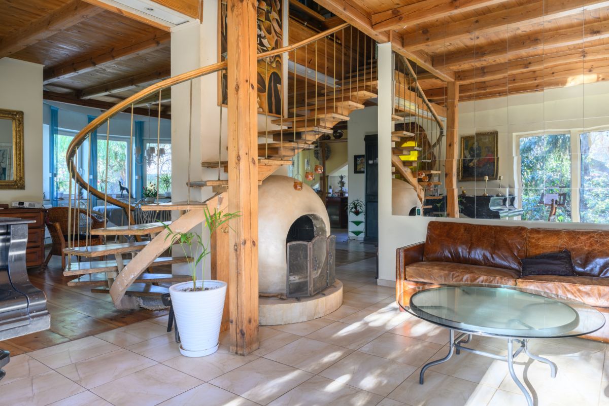 - przestronny, bardzo dobrze doświetlony salon z kominkiem