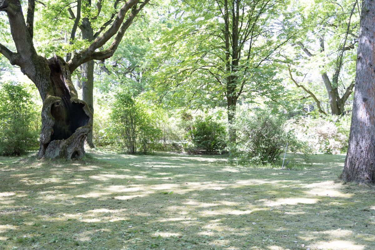 Największym atutem jest jednak otaczający dom park, w którym znajdziemy stare, wysokie drzewa, bujną roślinność i naturalne alejki. To niezwykła przestrzeń, która daje poczucie życia w prywatnym arboretum - idealnym miejscu do odpoczynku, spotkań z bliskimi czy praktyki slow life w rytmie natury.