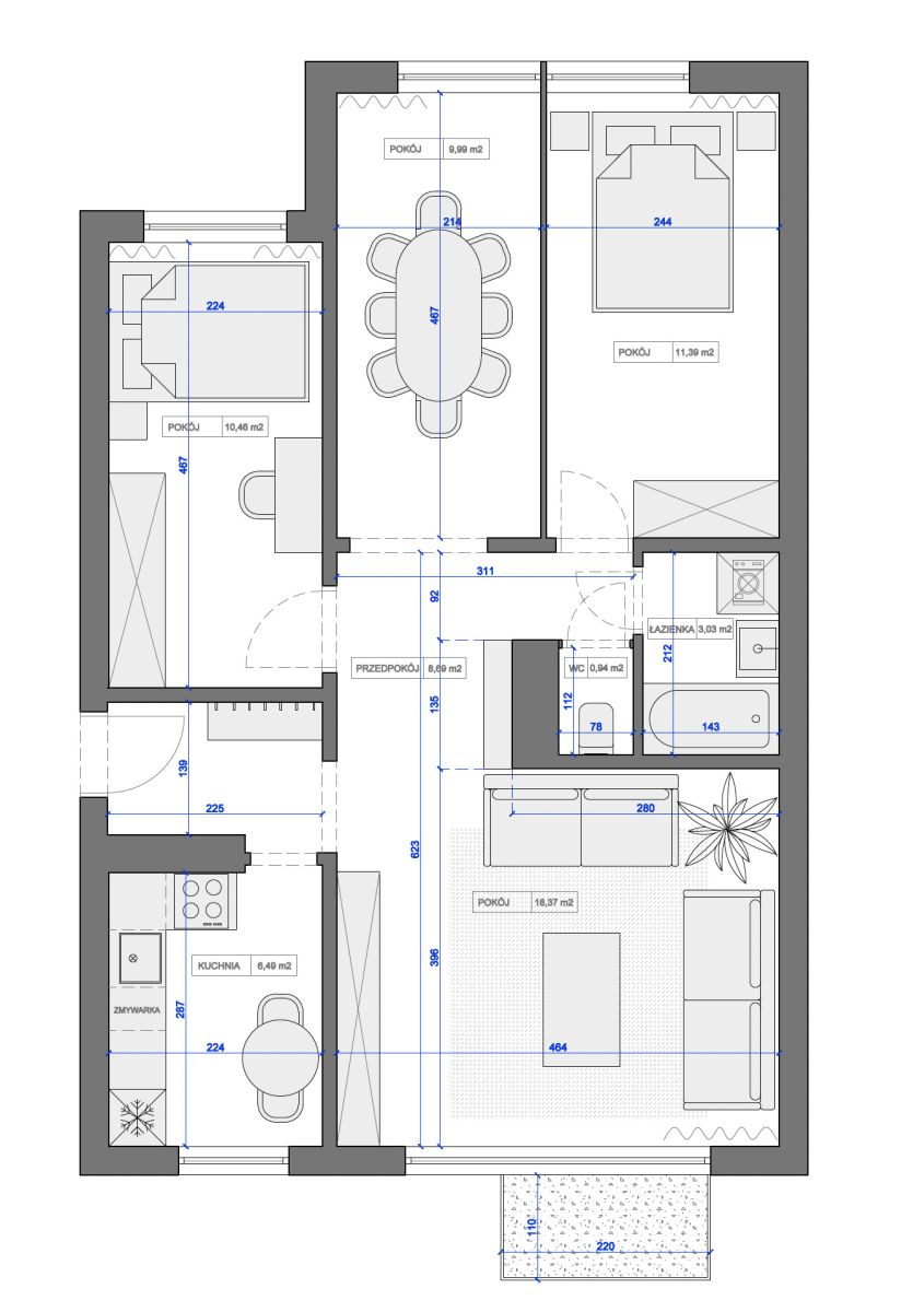 Wyróżnia się funkcjonalnym układem i możliwością wydzielenia dodatkowego pokoju.