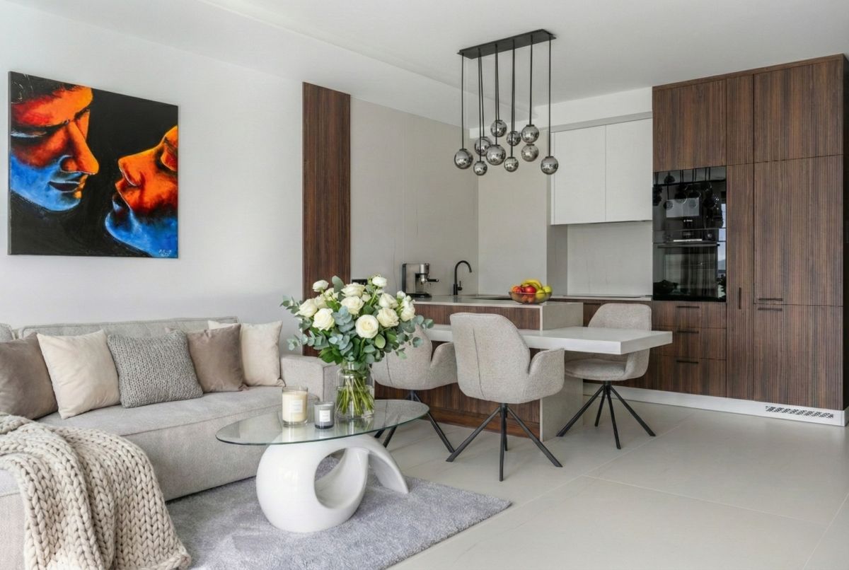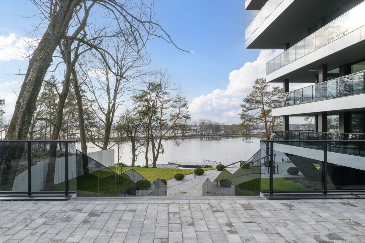 Widok: Z okien rozpościera się relaksujący widok na Zalew Zegrzyński. Wykończenie: Dbałość o detale, wysokiej klasy podłogi, stolarka i armatura. Układ: Przemyślana przestrzeń zapewniająca funkcjonalność i poczucie przestronności.