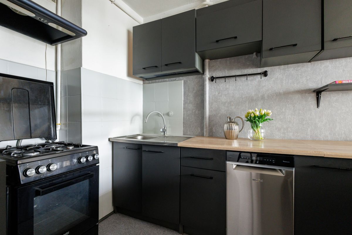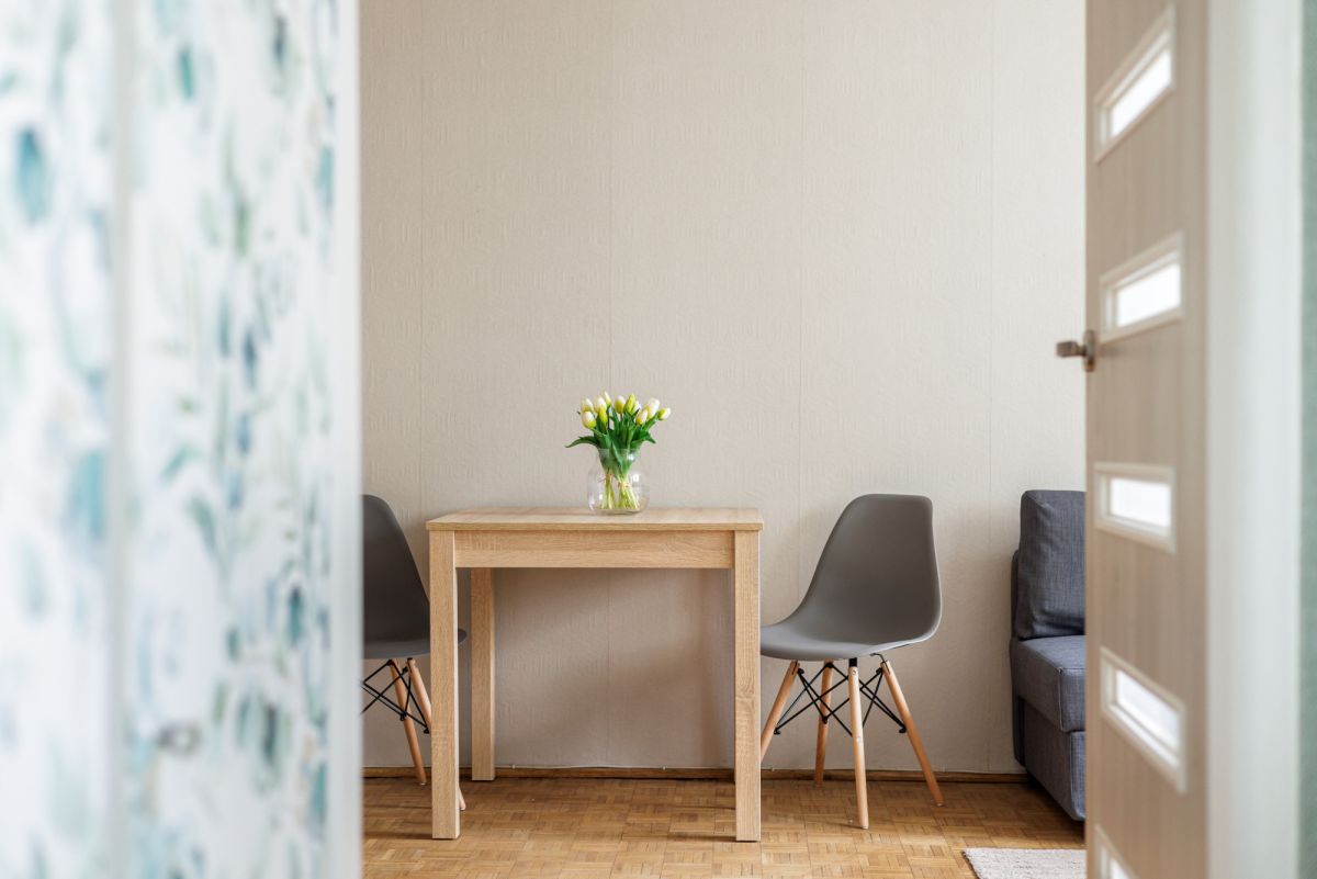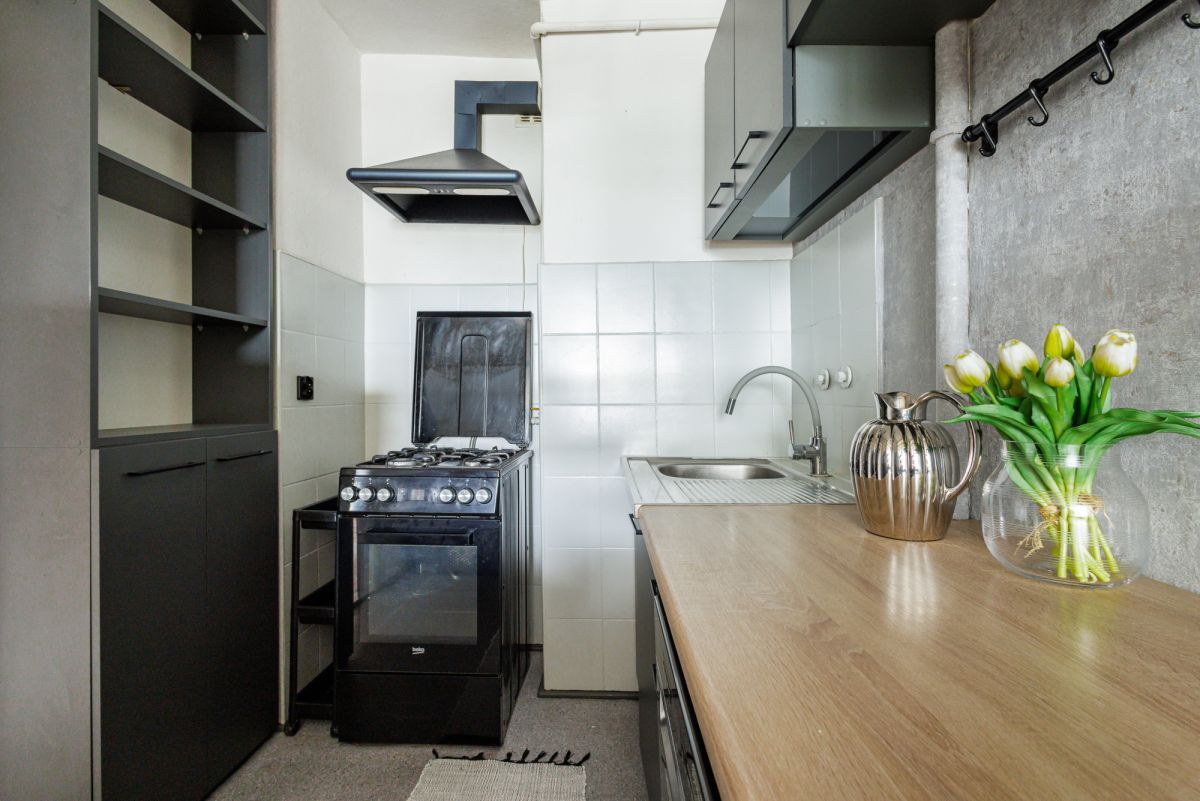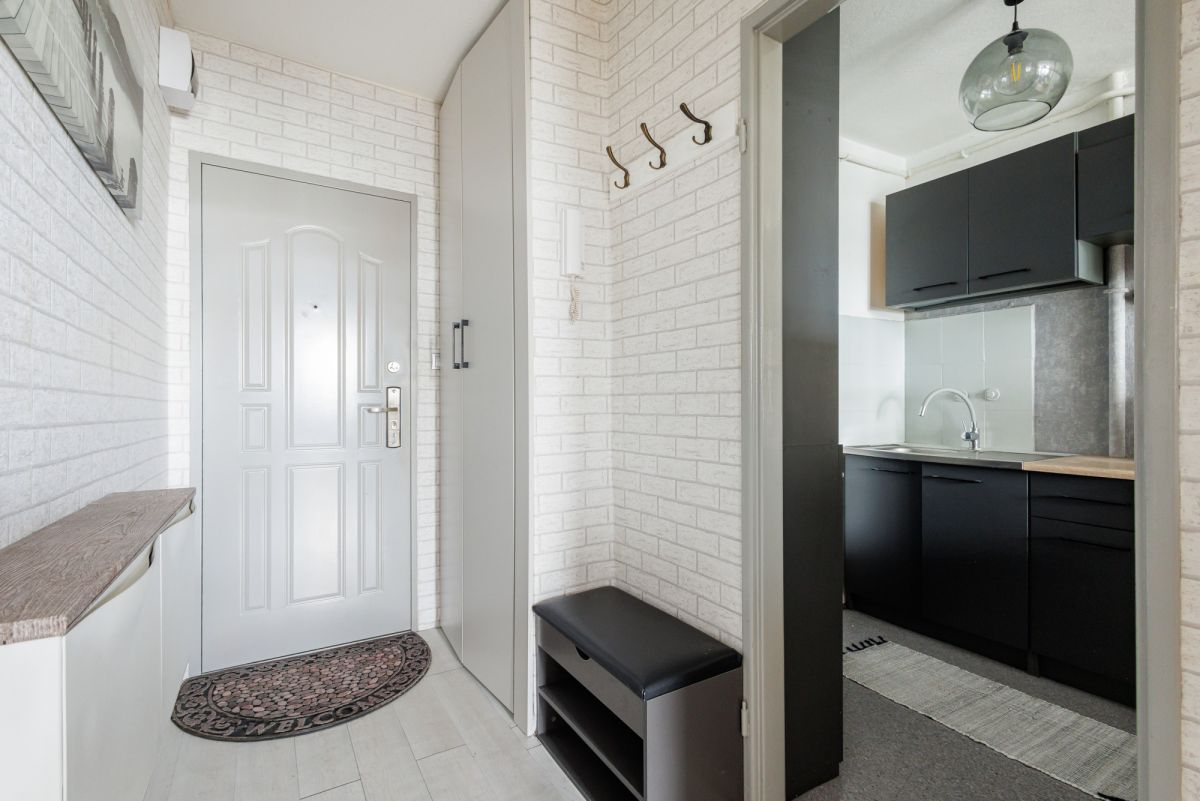 Na powierzchnię 38 m² składa się: • salon z wyjściem na balkon, • kuchnia, • sypialnia z łóżkiem małżeńskim i szafami, • łazienka z wanną, • hol z szafą,